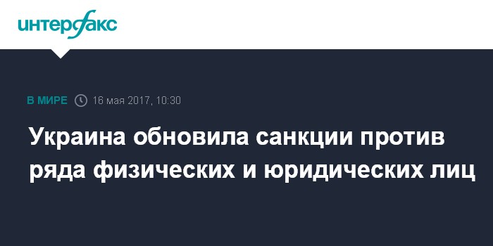 Москва. 16 мая. INTERFAX.RU - Президент Украины Петр Порошенко своим указом ввел в действие решение Совета национальной безопасности и обороны от 28 апреля 2017 года "О применении персональных специальных экономических и других ограничительных мер (санкций)".