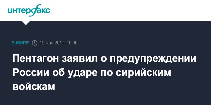 Пентагон заявил о предупреждении России об ударе по сирийским войскам