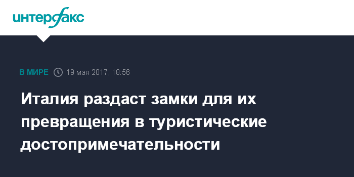 Москва. 19 мая. INTERFAX.RU - Правительство Италии намерено предоставить бесплатно 103 исторических здания, включая средневековые замки, виллы и монастыри, с условием, что их новые владельцы сделают из них места для туристов, пишет CNBC.