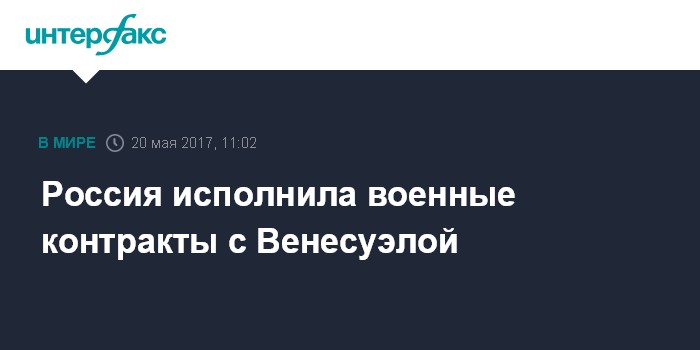 "На сегодняшний день все крупные контракты с Венесуэлой исполнены. Венесуэльской стороне поставлено все законтрактованное имущество, российская сторона полностью выполнила взятые на себя обязательства", - сказал он в Лиме на оборонной выставке СИТДЕФ-2017.