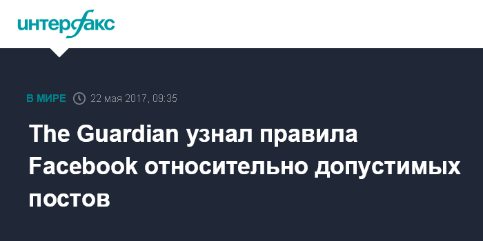 Москва. 22 мая. INTERFAX.RU - Британская The Guardian выяснила, какими правилами руководствуются сотрудники Facebook, решая, допускать ли публикацию того или иного поста.
