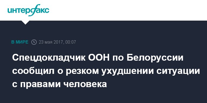 Москва. 23 мая. INTERFAX.RU - Специальный докладчик ООН по вопросу о положении в области прав человека в Белоруссии Миклош Харасти заявляет о резком ухудшении положения в области прав человека в республике.