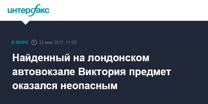 Москва. 23 мая. INTERFAX.RU - Британские полицейские установили, что подозрительный предмет, из-за которого ранее был эвакуирован автовокзал Виктория в Лондоне, не представляет угрозы.