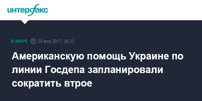 Москва. 23 мая. INTERFAX.RU - Вашингтон планирует в 2018 году втрое по сравнению с 2016 годом сократить финансирование Украины по линии Госдепартамента, говорится в проекте бюджета внешнеполитического ведомства США, распространенном во вторник.