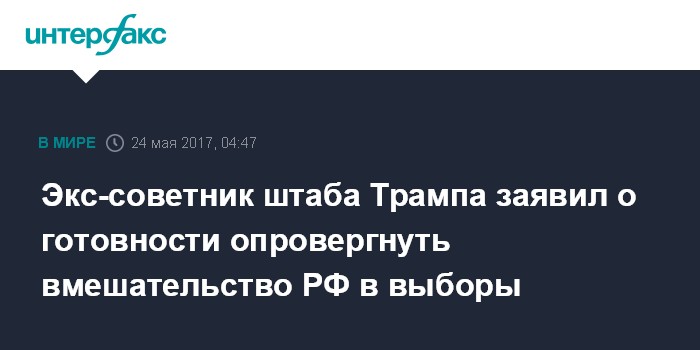 Экс-советник штаба Трампа заявил о готовности опровергнуть вмешательство РФ в выборы