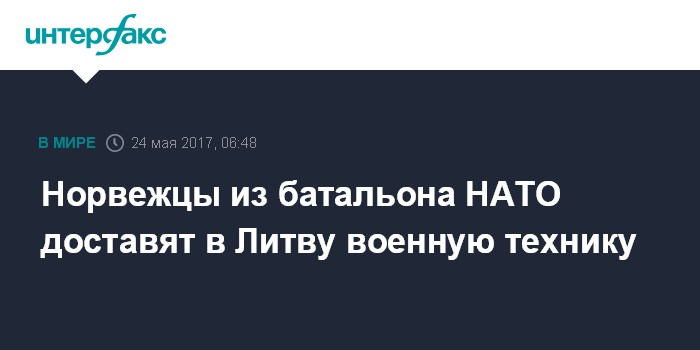 Москва. 24 мая. INTERFAX.RU - В Литву в среду прибудет военная и административная техника норвежского контингента, который служит в составе боевой группы батальона НАТО, предает агентство BNS. В республику прибудут около шестидесяти единиц техники, в том числе танки Leopard различных модификаций, боевые машины пехоты CV 90, БТР M113 различных модификаций, боевые и легкие транспортные средства, сообщило литовское министерство обороны.