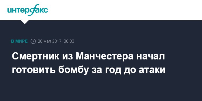 Москва. 26 мая. INTERFAX.RU - Предполагаемый исполнитель теракта на стадионе в Манчестере Салман Абеди начал готовиться к атаке примерно за год, написала в пятницу The Times.