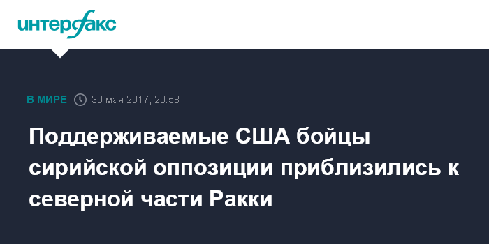 Москва. 30 мая. INTERFAX.RU - Оппозиционному альянсу "Сирийские демократические силы" (СДС), поддерживаемому США, во вторник удалось подойти с севера к сирийскому городу Ракке - оплоту группировки "Исламское государство" (ИГ, запрещена в РФ - ИФ), сообщает агентство The Associated Press.
