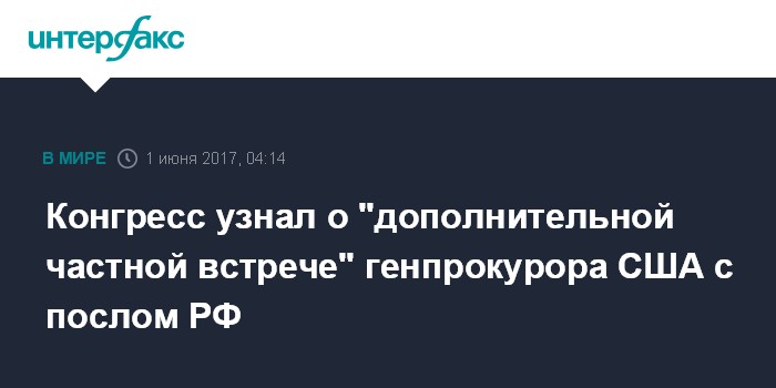 Конгресс узнал о "дополнительной частной встрече" генпрокурора США с послом РФ