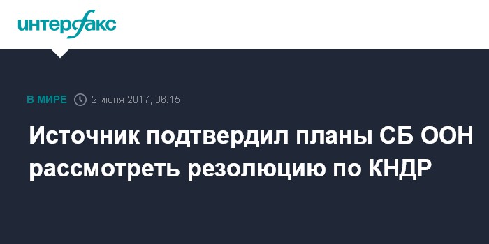 "Члены Совета Безопасности рассмотрят проект резолюции, расширяющий санкционный список в отношении КНДР", - сказал собеседник агентства.
