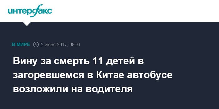 Вину за смерть 11 детей в загоревшемся в Китае автобусе возложили на водителя