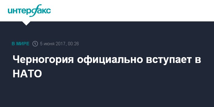 Москва. 5 июня. INTERFAX.RU - Черногория официально станет в понедельник 29-м членом Североатлантического альянса.