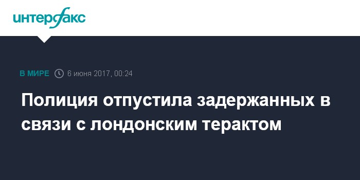 Москва. 6 июня. INTERFAX.RU - Полиция Лондона отпустила без предъявления обвинений 12 задержанных после субботнего теракта на мосту, сообщила BBC News.