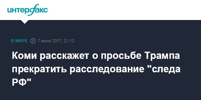 Коми расскажет о просьбе Трампа прекратить расследование "следа РФ"