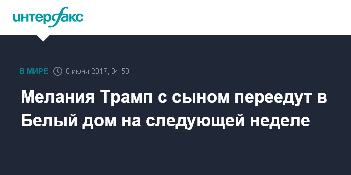 "Ожидается, что супруга президента США Мелания Трамп и сын Бэррон по окончании учебного года, наконец, переедут 1 4 июня в Вашингтон", -говорится в сообщении.