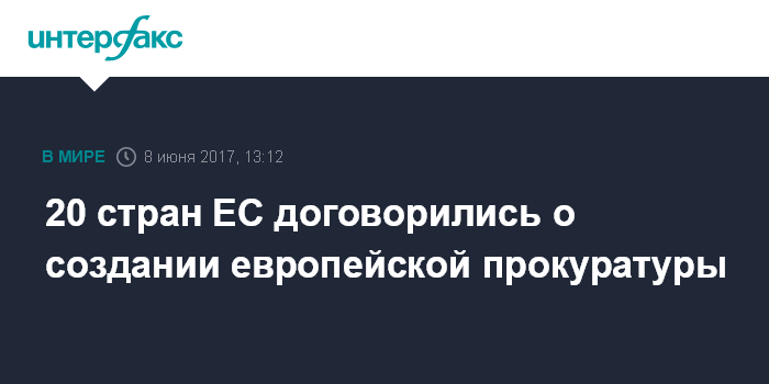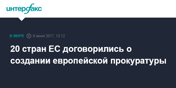 Москва. 8 июня. INTERFAX.RU - Двадцать государств-членов Евросоюза, объединенных в формат "расширенного сотрудничества" по созданию европейской прокуратуры (EPPO), согласовали в четверг законодательство, в котором излагаются ее роль и детали функционирования, сообщила пресс-служба Совета ЕС.