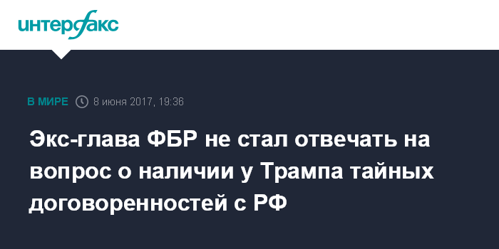 Экс-глава ФБР не стал отвечать на вопрос о наличии у Трампа тайных договоренностей с РФ