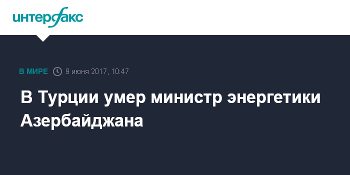 Москва. 9 июня. INTERFAX.RU - Министр энергетики Азербайджана Натиг Алиев, проходивший лечение в турецкой клинике Florence Nightingale в Стамбуле, умер, сообщают в пятницу азербайджанские СМИ.