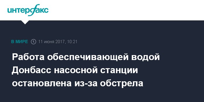 Москва. 11 июня. INTERFAX.RU - Насосная станция в Ясиноватском районе, обеспечивающая водой 2 млн человек, остановлена из-за обстрела, сообщают в Донецке.