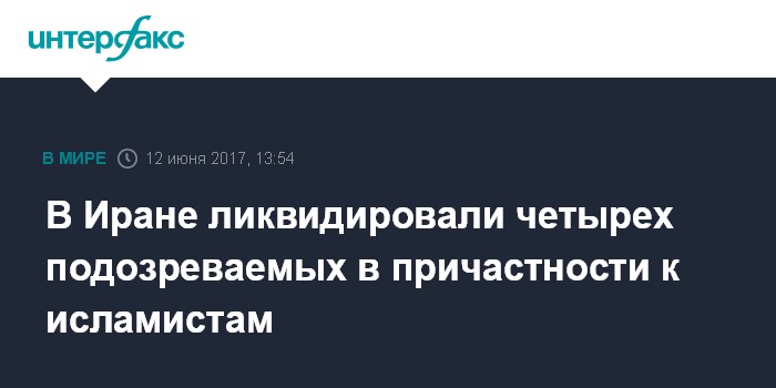 Москва. 12 июня. INTERFAX.RU - Полиция Ирана уничтожила четырех вооруженных людей, предположительно, связанных с террористической группировкой "Исламское государство" (ИГ, запрещена в РФ), передает в понедельник иранское агентство "Тасним".