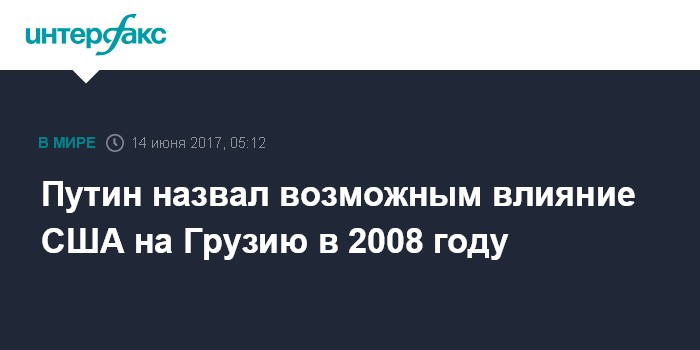 Москва. 14 июня. INTERFAX.RU - Президент России Владимир Путин считает возможным, что США поддержали агрессию Грузии против Южной Осетии в 2008 году, начатую по приказу бывшего тогда президентом Михаила Саакашвили.