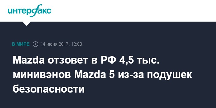 Mazda отзовет в РФ 4,5 тыс. минивэнов Mazda 5 из-за подушек безопасности