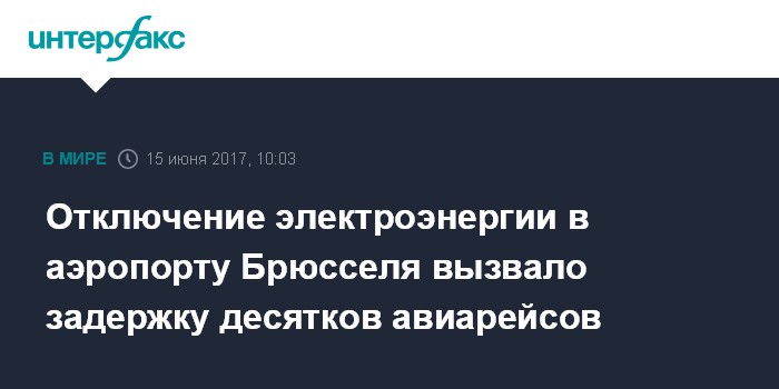 Москва. 15 июня. INTERFAX.RU - Отключение электроэнергии в международном аэропорту столицы Бельгии Брюсселя стало причиной задержки вылета десятков авиарейсов, сообщает в четверг агентство Associated Press.