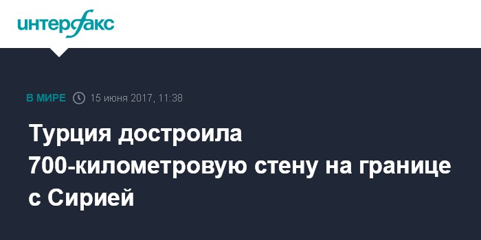 Москва. 15 июня. INTERFAX.RU - Турция завершила строительство 700-километровой стены на границе с Сирией.
