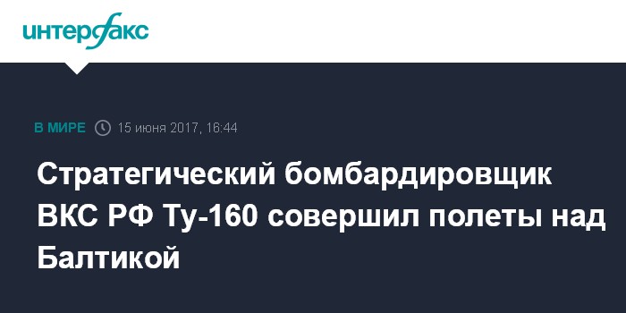 Москва. 15 июня. INTERFAX.RU - Российский стратегический бомбардировщик Ту-160 вместе с другими самолетами ВКС РФ совершили полеты над акваторией Балтийского моря, сообщили в четверг ВВС Финляндии, публикующие на своем сайте фотографии российских самолетов, сделанные с борта финского истребителя F/A-18.