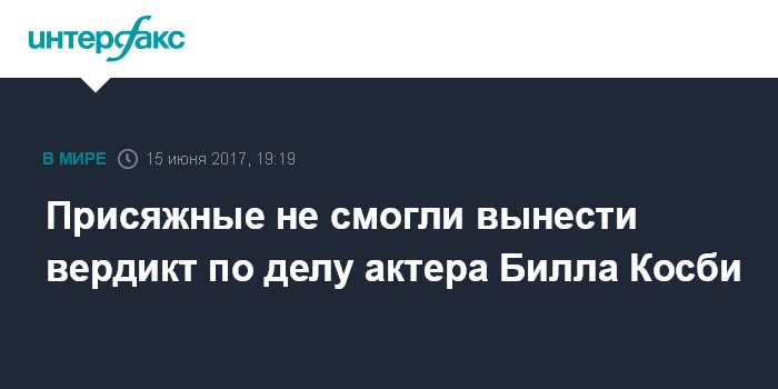 Москва. 15 июня. INTERFAX.RU - Жюри присяжных, которые рассматривают дело голливудского актера Билла Косби, обвиняемого в сексуальных домогательствах, не смогли прийти к единому вердикту.