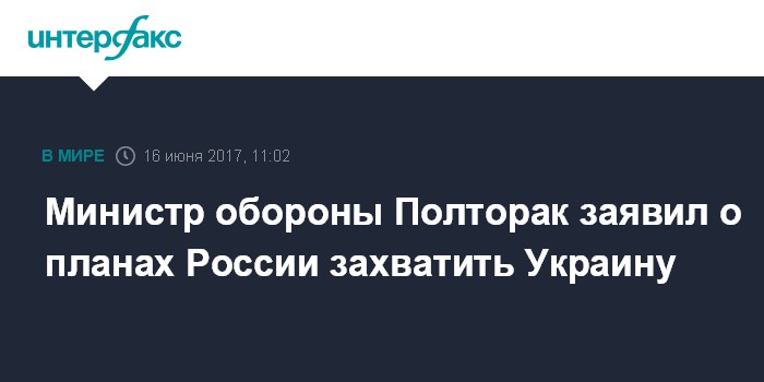 Москва. 16 июня. INTERFAX.RU - Текущая ситуация в Донбассе свидетельствует, что Россия не отказывается от планов нападения на Украину, утверждает глава украинского Минобороны Степан Полторак.