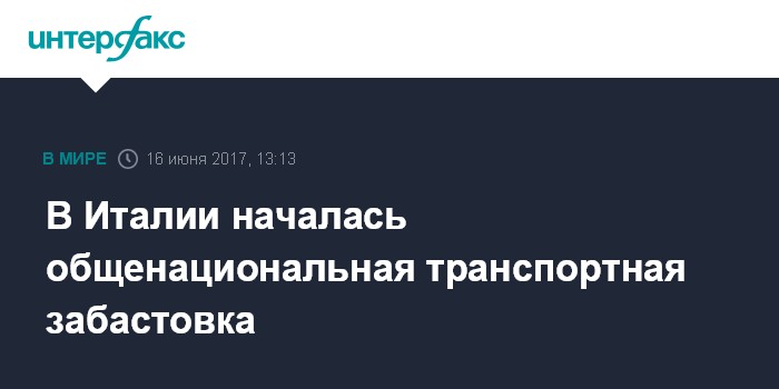 Москва. 16 июня. INTERFAX.RU - Общенациональная транспортная забастовка началась в ряде городов Италии, она затронет многие транспортные узлы, сообщает в пятницу сайт итальянской газеты Corriere della Sera.