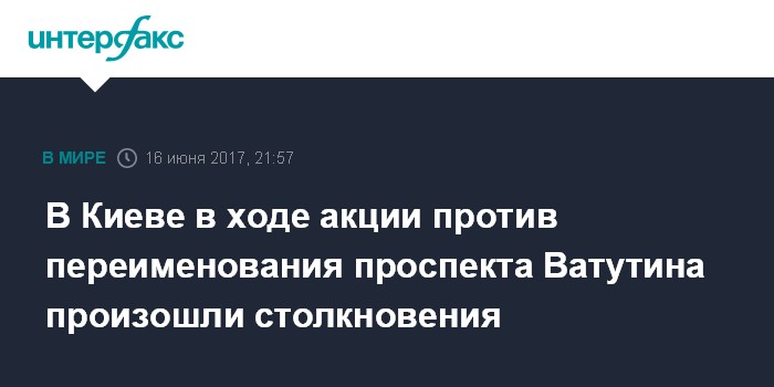 Москва. 16 июня. INTERFAX.RU - В Киеве во время акции против переименования проспекта Ватутина в проспект Шухевича произошло столкновение между протестующими и активистами "Национального корпуса". Об этом сообщил в пятницу агентству "Интерфакс" первый замглавы партии Назар Кравченко.