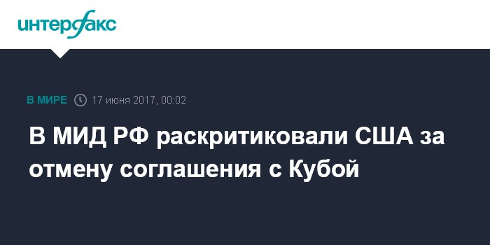 В МИД РФ раскритиковали США за отмену соглашения с Кубой