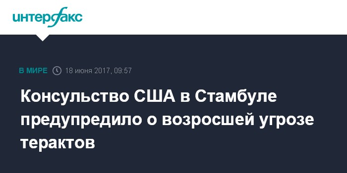 Москва. 18 июня. INTERFAX.RU - Консульство США в Стамбуле предупредило о возросшей угрозе террористических атак в деловом районе города.