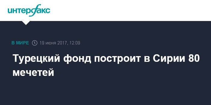 Москва. 19 июня. INTERFAX.RU - Глава Управления по делам религии Турции Мехмет Гермез сообщил, что религиозный фонд страны построит 80 мечетей в четырех сирийских городах, передает в понедельник Анатолийские агентство новостей.