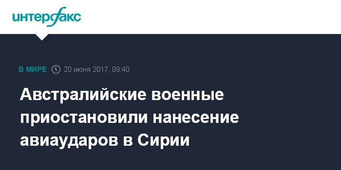 Москва. 20 июня. INTERFAX.RU - Министерство обороны Австралии сообщило во вторник о временном прекращении авиаударов по целям в Сирии.