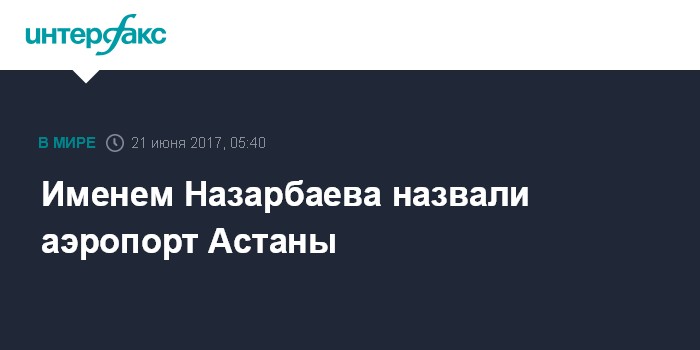 Москва. 21 июня. INTERFAX.RU - Постановлением правительства Казахстана аэропорт Астаны переименован в "Международный аэропорт Нурсултан Назарбаев".