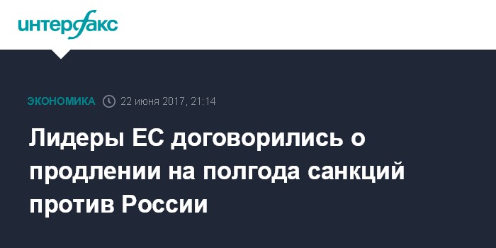 Москва. 22 июня. INTERFAX.RU - Председатель Евросовета Дональд Туск сообщил в четверг, что лидеры ЕС договорились продлить экономические санкции против России на полгода.