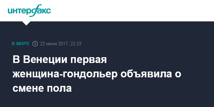 Москва. 22 июня. INTERFAX.RU - Алекс Хай, которая десять лет назад прославилась как первая женщина-гондольер в Венеции, сообщила, что она трансгендер, пишет в четверг Associated Press.