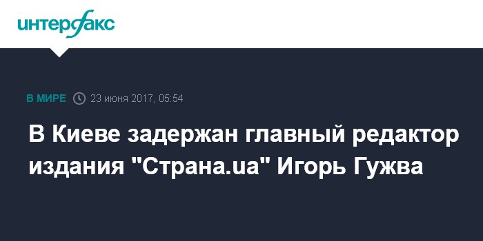 Москва. 23 июня. INTERFAX.RU - В четверг вечером в Киеве задержан главный редактор интернет-издания "Страна.ua" Игорь Гужва, сообщил генеральный прокурор Украины Юрий Луценко.