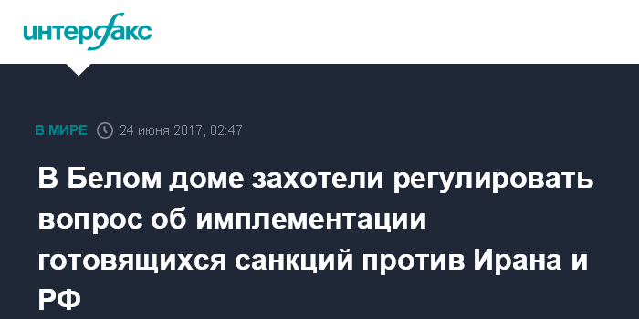 Москва. 24 июня. INTERFAX.RU - Администрация США нацелена на то, чтобы сохранять возможность самостоятельно принимать решения по имплементации готовящихся в конгрессе дополнительных санкций против РФ и Ирана, заявил в пятницу представитель Белого дома Шон Спайсер.