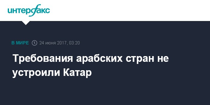 Москва. 24 июня. INTERFAX.RU - Катар назвал неприемлемыми и невыполнимыми требования, выдвинутые арабскими странами для отмены блокады, сообщила в субботу BBC News.