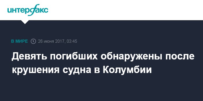 Москва. 26 июня. INTERFAX.RU - По меньшей мере девять человек погибли, еще 28 числятся попавшими без вести в результате аварии пассажирского судна на водохранилище в Колумбии, сообщили местные власти.
