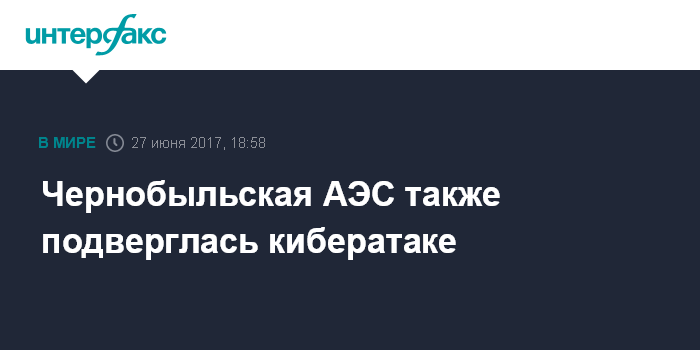 Москва. 27 июня. INTERFAX.RU - Чернобыльская АЭС перешла на радиационный мониторинг промышленной площадки в ручном режиме из-за кибератаки, сообщила пресс-служба Государственного агентства по управлению зоной отчуждения.