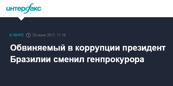 На этой неделе генеральный прокурор Бразилии Родригу Жанот выдвинул против президента обвинения во взяточничестве. Президент Бразилии, как подозревает прокуратура, получил деньги от руководителей крупнейшего мясоперерабатывающего предприятия JBS. Он отверг эти обвинения, назвав их фантастикой. Начнет ли суд процесс против главы государства, будет решено по итогам голосования в палате депутатов страны.