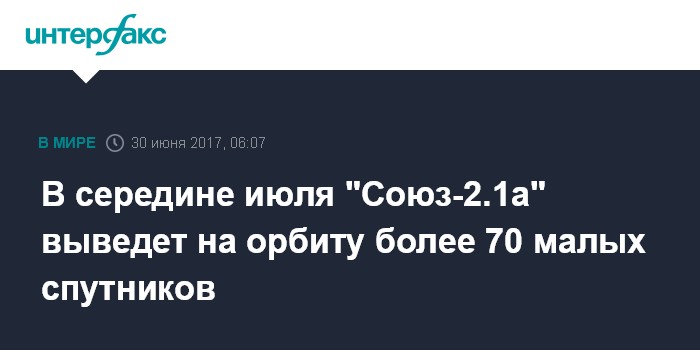 В середине июля "Союз-2.1а" выведет на орбиту более 70 малых спутников