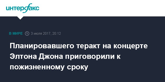 Планировавшего теракт на концерте Элтона Джона приговорили к пожизненному сроку