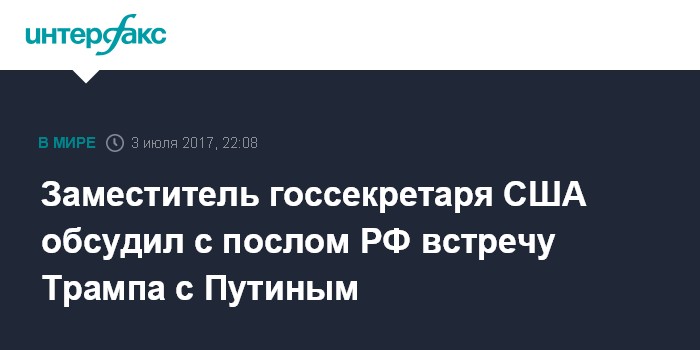Заместитель госсекретаря США обсудил с послом РФ встречу Трампа с Путиным