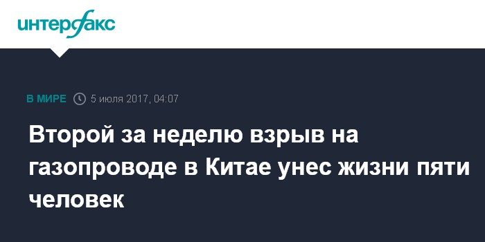 Второй за неделю взрыв на газопроводе в Китае унес жизни пяти человек